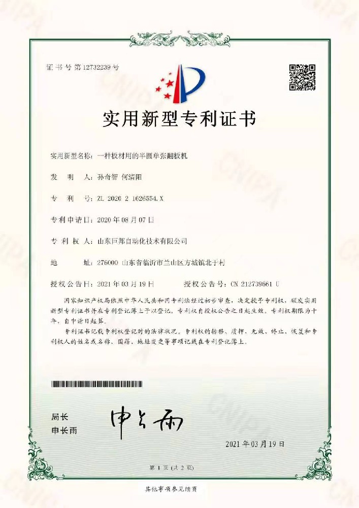 直線180°翻板機(jī)